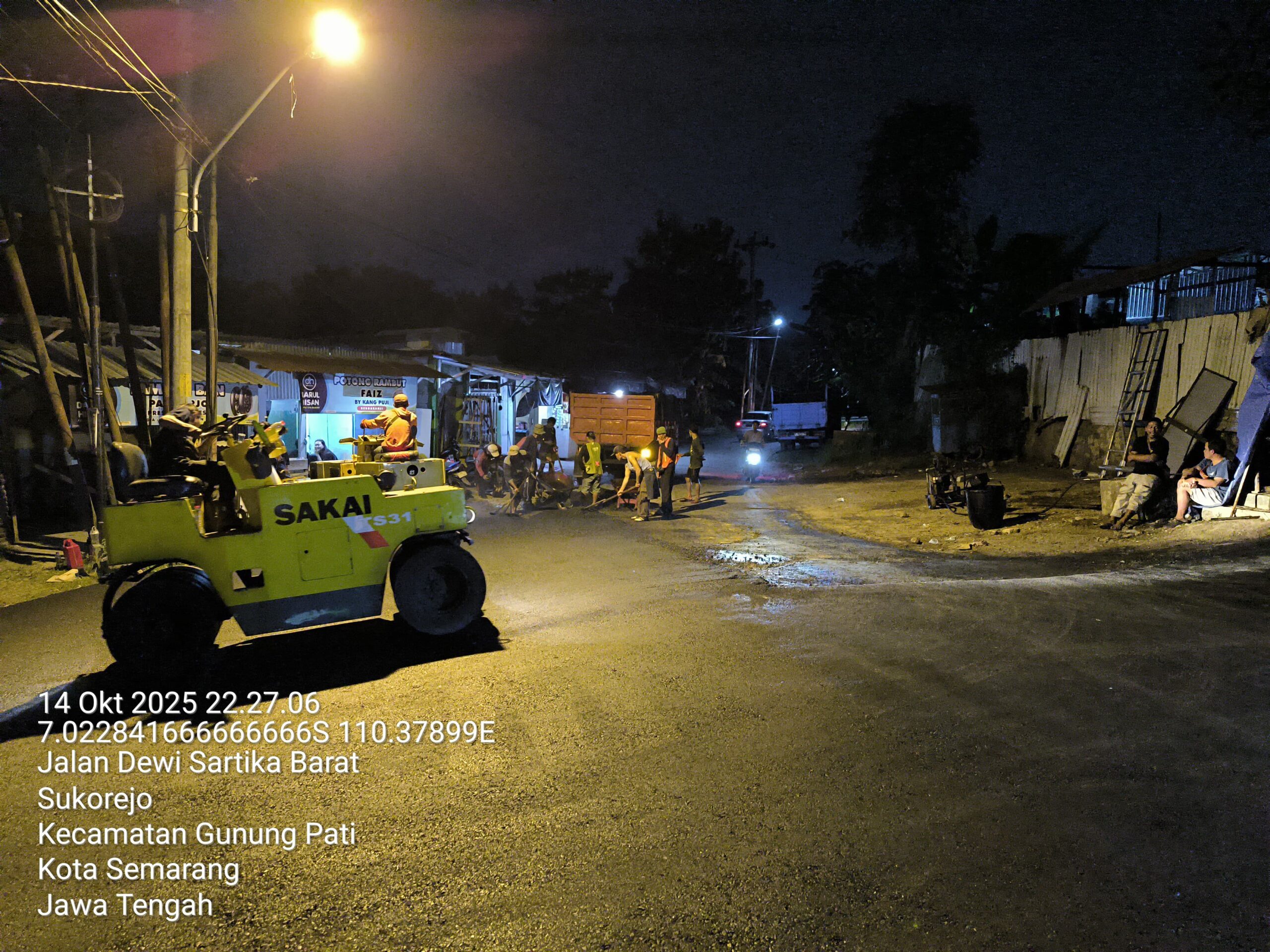 SEMARANG|Republikajateng.com, 15 Oktober 2025 – Di bawah sorot lampu malam, Jalan Dewi Sartika Barat di Kecamatan Gunungpati, Kota Semarang, mengalami transformasi signifikan. PT Praba Mas Hill, dengan menggandeng Dinas Pekerjaan Umum (DPU) Kota Semarang, menjalankan proyek perbaikan jalan yang ambisius, dimulai pada Senin malam (14/10/2025) dan ditargetkan selesai pada Selasa pagi (15/10/2025).