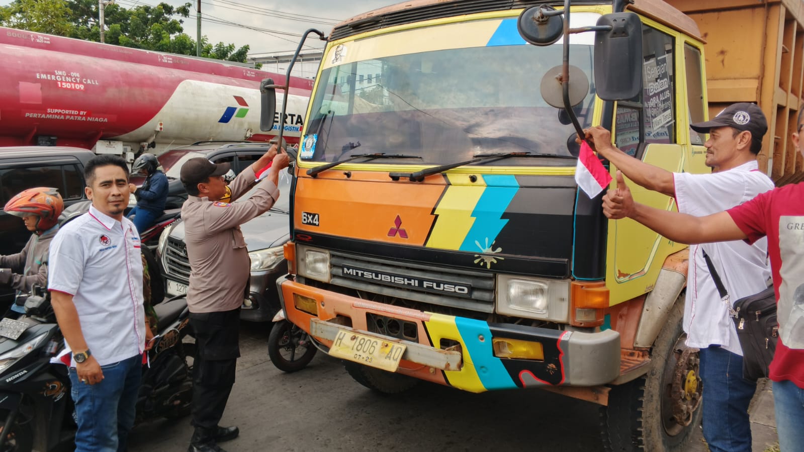 Semarang, RepublikaJateng.Com | 14 Agustus 2025 – Semangat kemerdekaan terasa kental di Exit Tol Krapyak, Kota Semarang, saat Dewan Pimpinan Wilayah (DPW) Ikatan Wartawan Online Indonesia (IWOI) Jawa Tengah dan Dewan Pimpinan Daerah (DPD) IWOI Kota Semarang berkolaborasi dengan Polsek Semarang Barat menggelar aksi pembagian Bendera Merah Putih. Aksi ini menjadi bagian dari perayaan Hari Ulang Tahun (HUT) ke-80 Kemerdekaan Republik Indonesia.